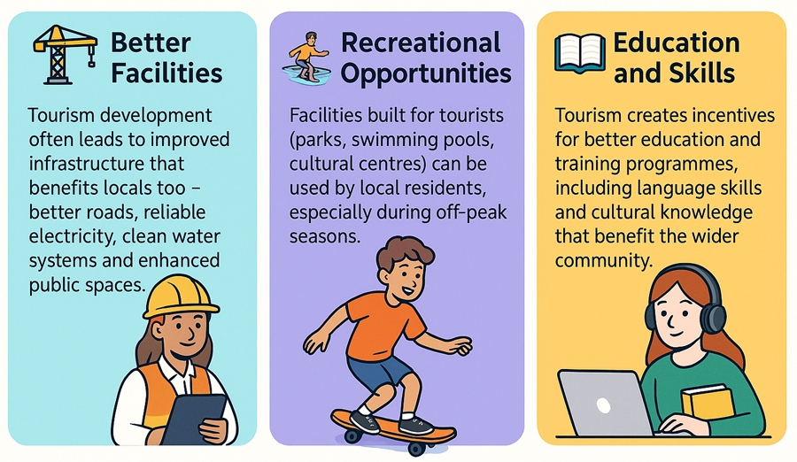 Tourism can enhance the quality of life for local residents in several important ways that go beyond just economic benefits.